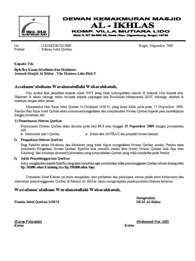Contoh surat permohonan qurban 2019 kumpulan contoh. Terima kasih telah berkunjung ke blog kumpulan surat penting 2019. Surat penawaran pengadaan hewan qurban 1440 h 2019 m kepada yth bapakibu pimpinan di tempat assalamualaikum wr. Dengan ini kami masyarakat gampong ujong baroh kecamatan simpang tiga kabupaten pidie, mengajukan permohonan bantuan hewan qurban untuk . Skripsi d contoh surat pemberitahuan qurban 2019 kumpulan contoh .